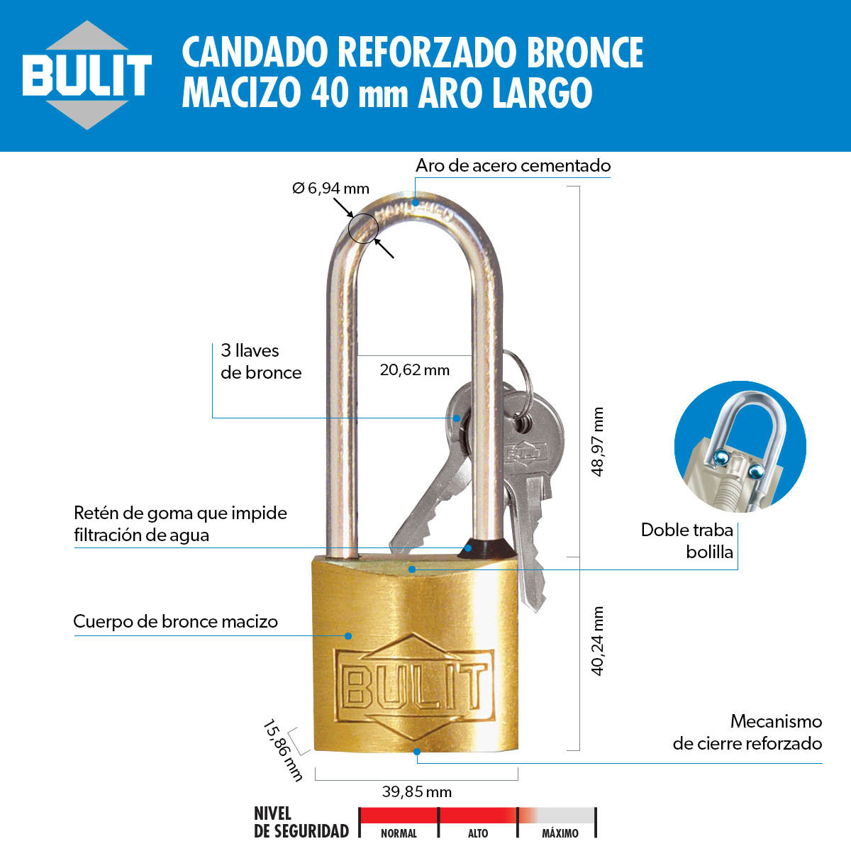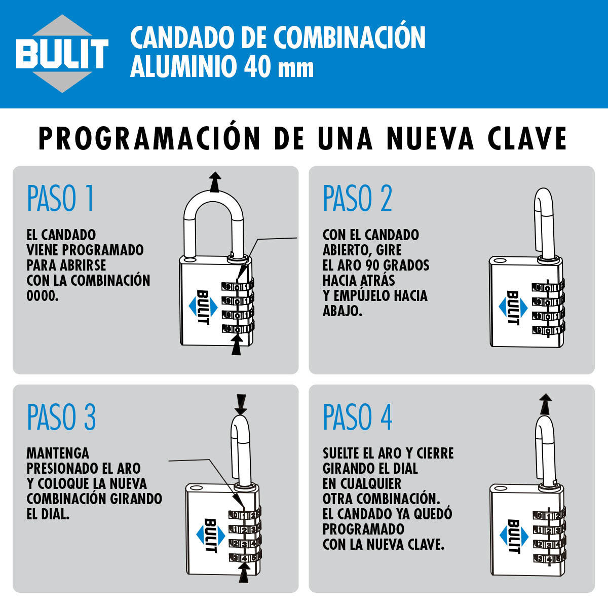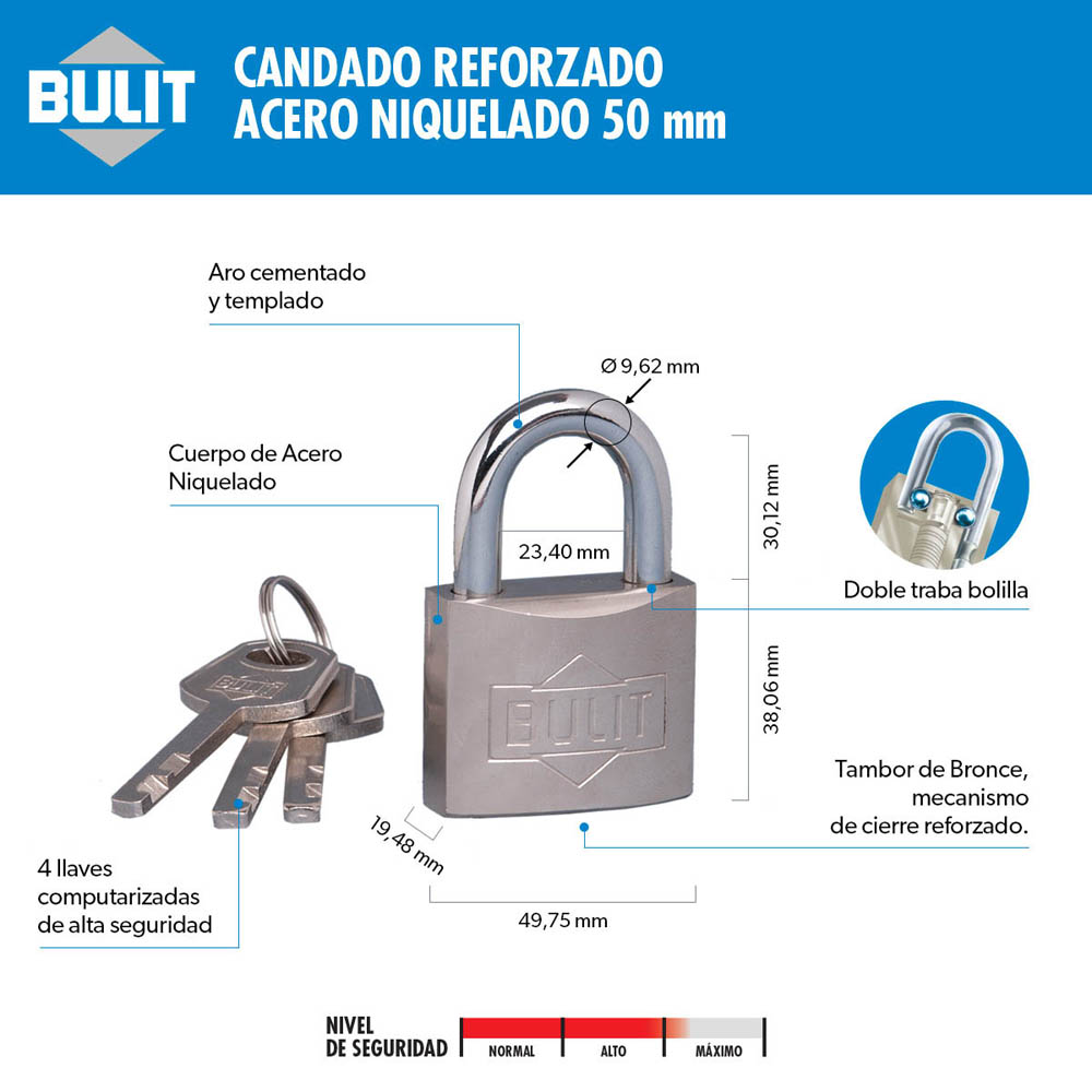 BULIT es la marca líder en Candados con una amplia línea de modelos y medidas tanto de candados con llave como candados de combinación que se adaptan a todas las necesidades y entornos. Encontrá el más adecuado para vos y protegé tus cosas más preciadas con BULIT.
