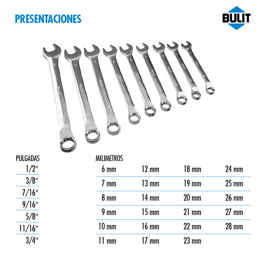 Fabricadas en acero al cromo vanadio con un riguroso tratamiento térmico que dan como resultado una elevada resistencia.
